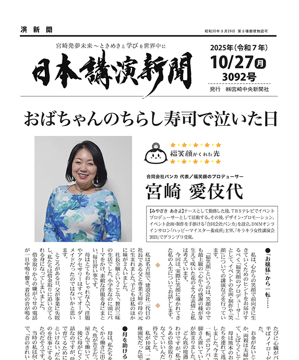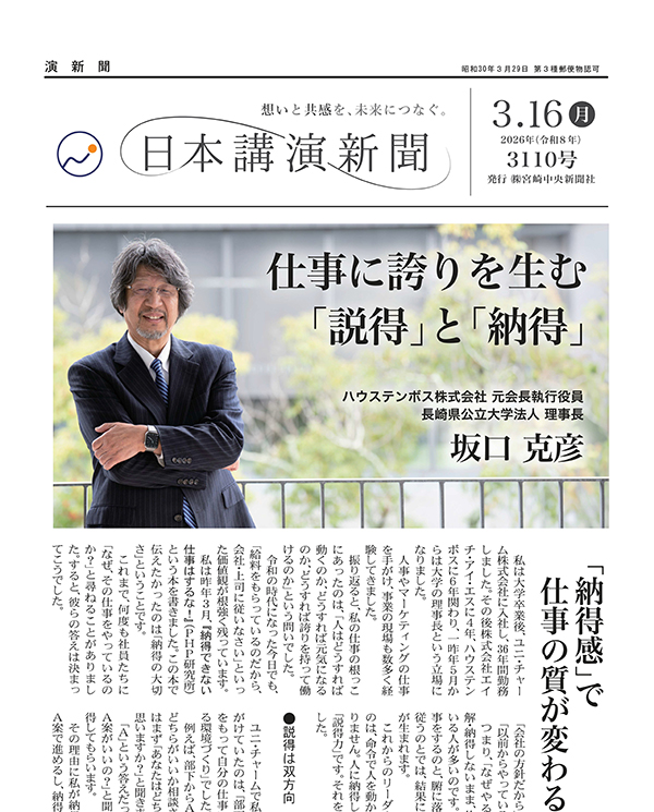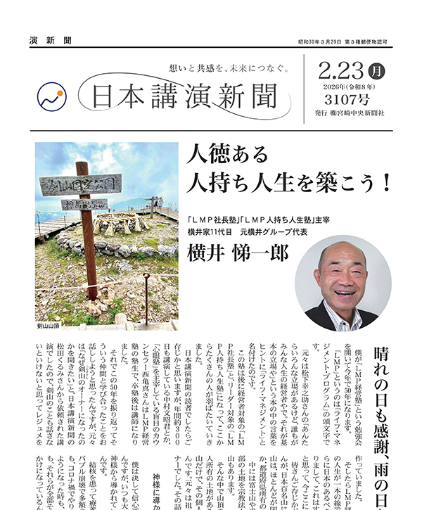 日本講演新聞は各種講演会を取材して、講師の方々の生き方、人生経験、熱い想いを紙面を通してお届けしています。さらに、人生に役立つヒントが見つかるよう全力で発信しています。