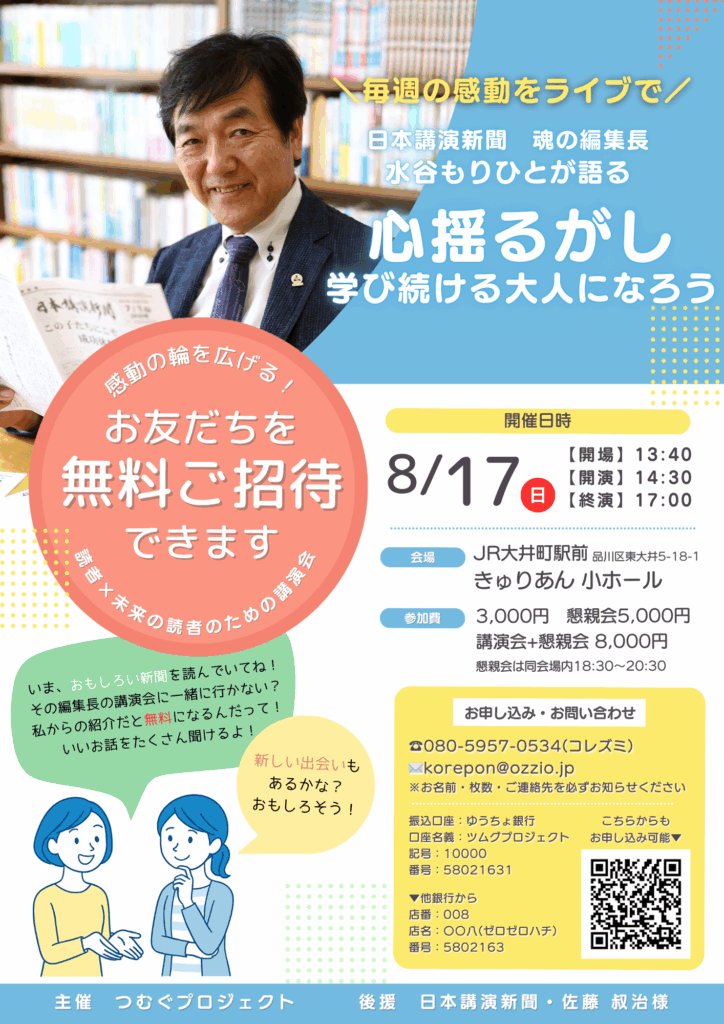 感動の輪を広げる! 日本講演新聞の読者と未来の読者のための講演会 毎週の感動をライブで!!