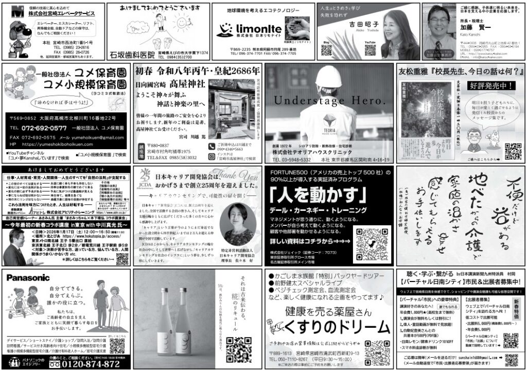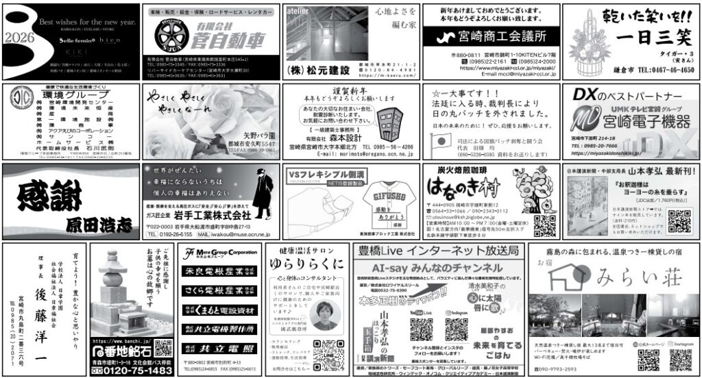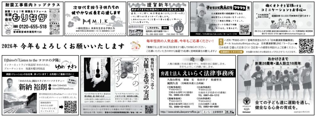 今年も多くの年賀広告を出していただきました!プレゼント応募ができる広告もありますよ!1つ1つお楽しみください^^